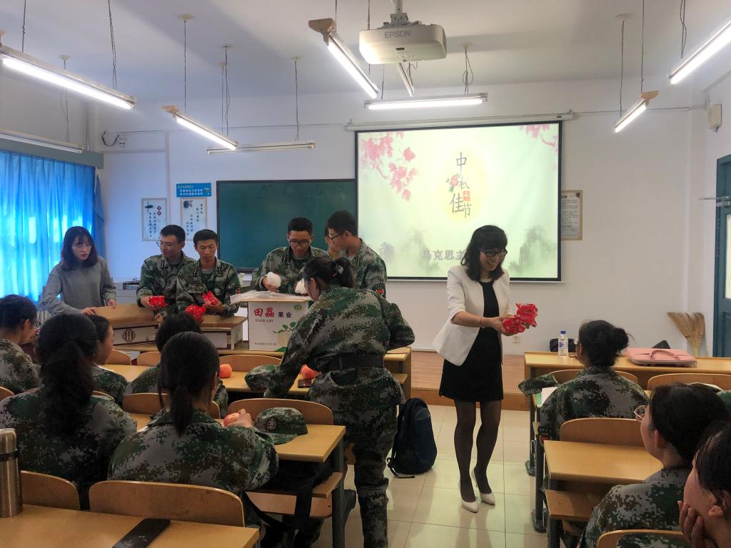 党委副书记、纪委书记崔妍老师、本科辅导员程思阳老师与新生共度中秋佳节。