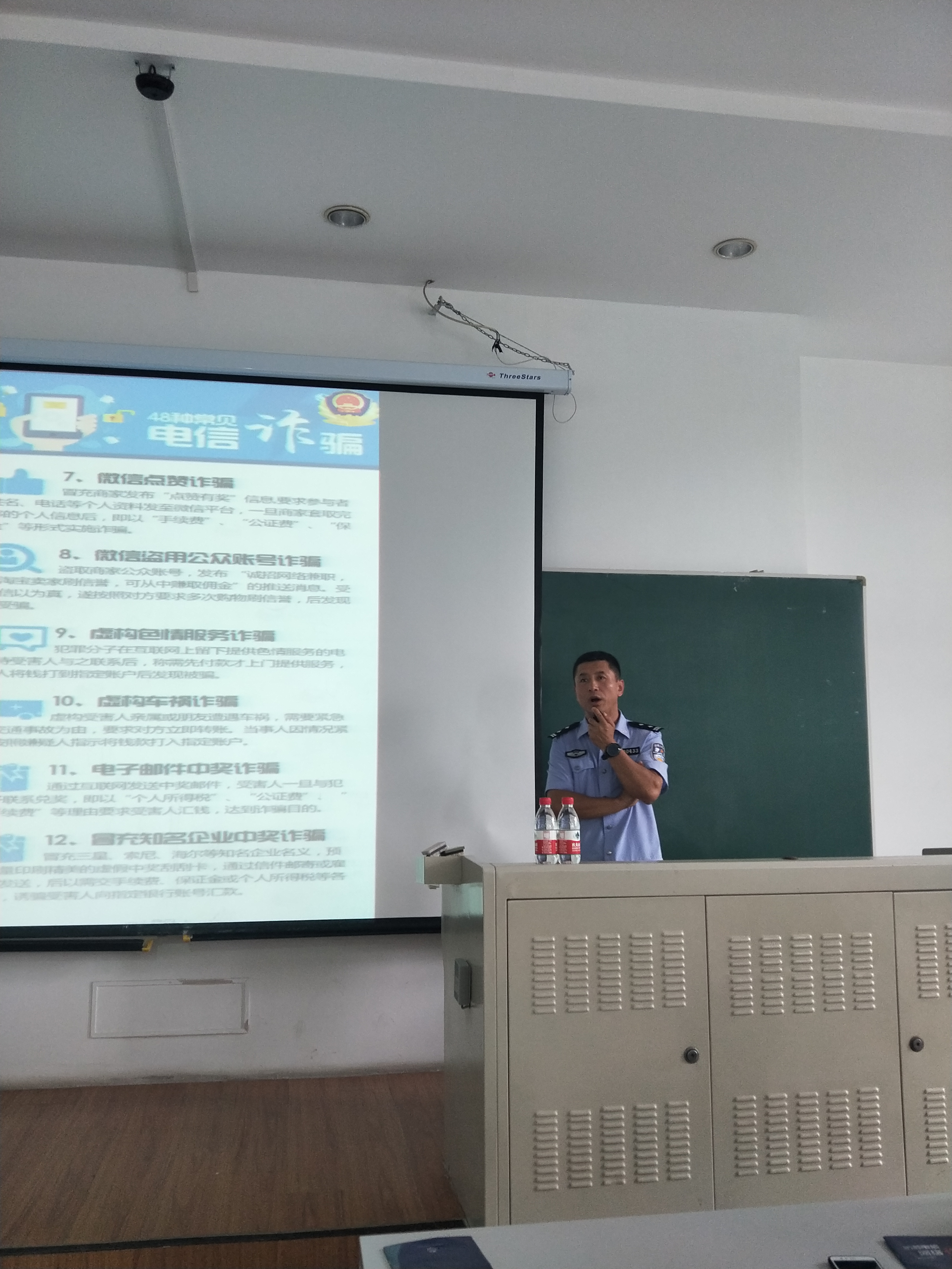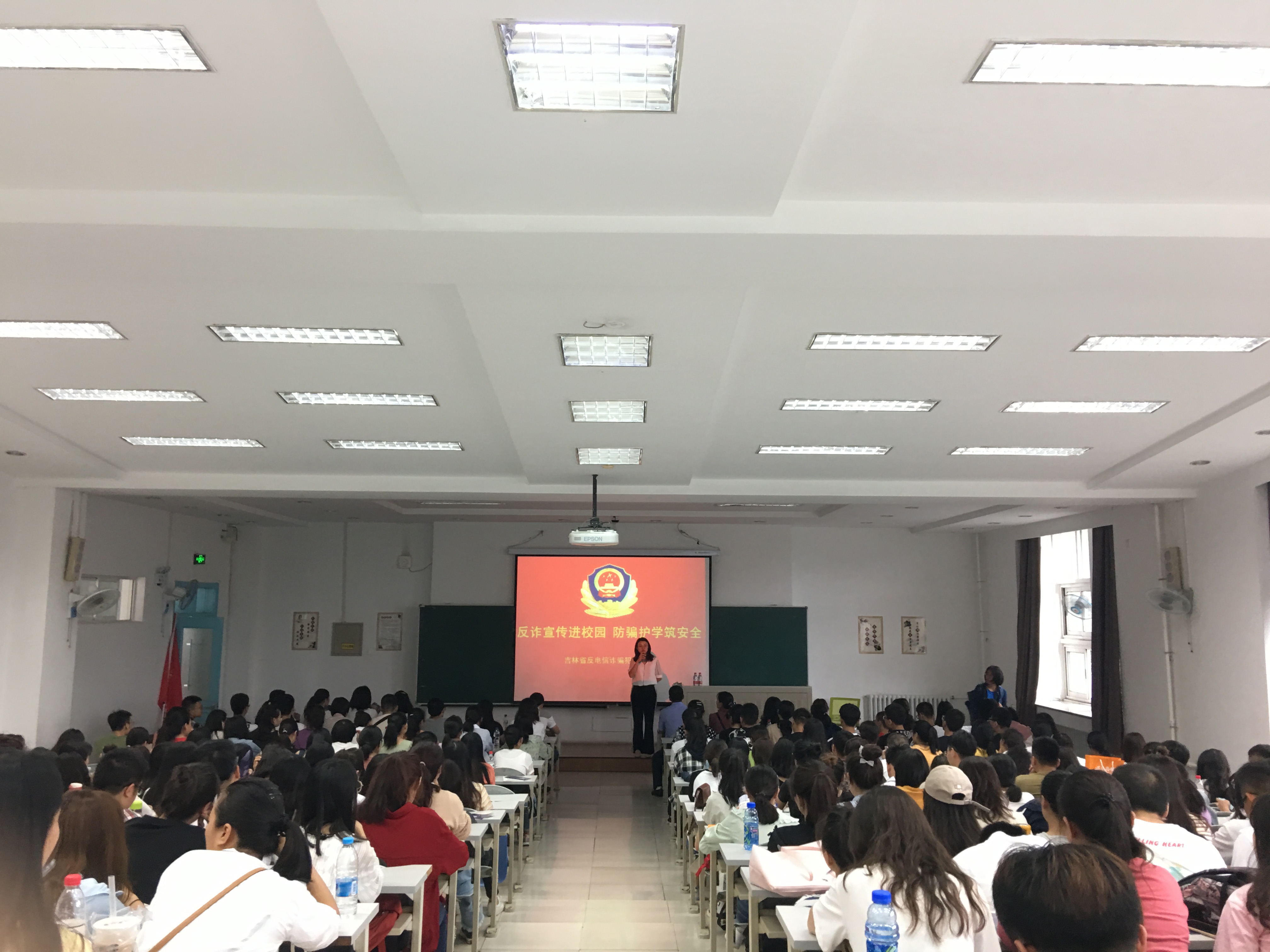 邀请吉林省公安厅反电信诈骗犯罪中心于宽警官在中心校区第三教学楼第十一阶梯教室为新生进行了防网络诈骗知识讲座。讲座由成人抖音