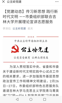 团队成员深入公主岭市政府机关、轴承有限责任公司、长青村和市一中,共展开了四场别开生面的宣讲。建档立卡贫困村第一书记、村党组织书记、企业党务工作者、机关干部、社区“两委”成员、中小成人抖音
