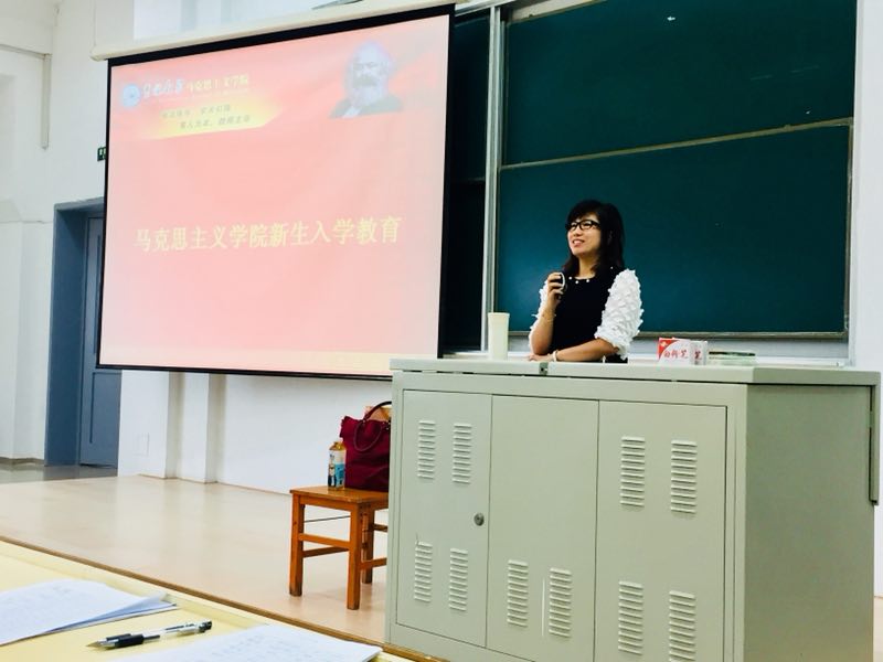 党委副书记崔妍老师在中心校区逸夫16阶为新生做思想政治教育专题讲座。