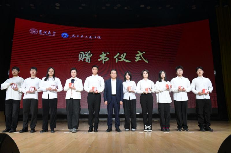 开学典礼在全场庄严奏唱中华人民共和国国歌中拉开了序幕。接着举行了赠书仪式。为激励同学们品读经典文集,铸牢信仰基石,以经典涵养正气、润泽心田,成人抖音