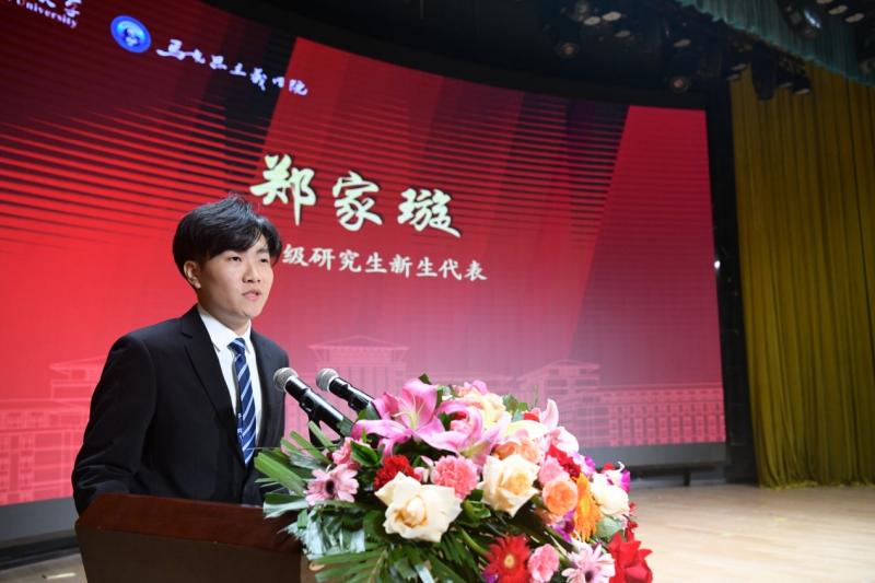 随后,2024级本科生新生代表王梓宇和2024级博士研究生新生代表郑家璇分别进行发言。王梓宇同学表示,三年军旅生涯使他深刻领悟到马克思主义理论是塑造理想信念,铸就时代新人的关键力量。他坚信,随着长期深入的学习,成人抖音