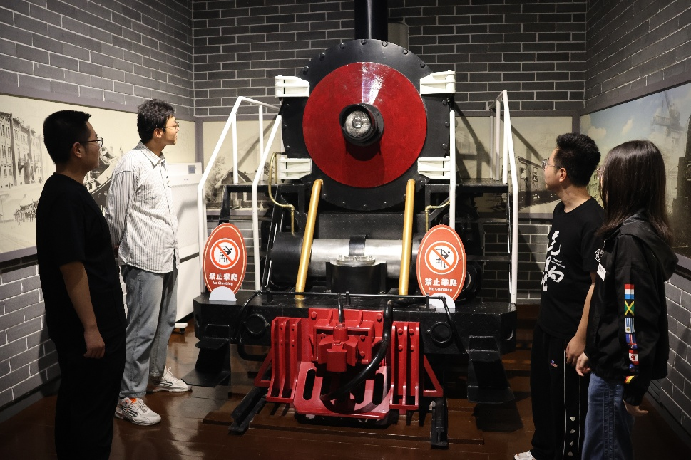 实践小组先就两层展厅进行了参观。在讲解员的引导下,大家细致观摩了展柜中锈迹斑斑的铁轨零件、泛黄的历史文献、定格岁月的老照片及按比例还原的机车模型等展品,记录下关键信息,并不时就文物年代、历史背景等细节与讲解员交流核实。