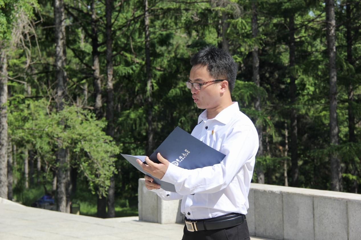 硕士第二党支部支部书记樊艳茹同志的领誓下举起右拳,面向党旗,庄严宣誓。入党宣誓不仅是见证新党员向党表明决心、亮明态度的重要时刻,也是警醒老党员不忘初心、恪守承诺的必要环节,它激励了每一位党员要以党章规范自己的言行,牢记党的宗旨,履行党员义务,做一名称职的、合格的,无愧于党员称号、无悔于入党誓词的真正的共产党员。