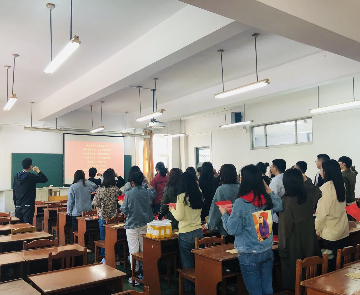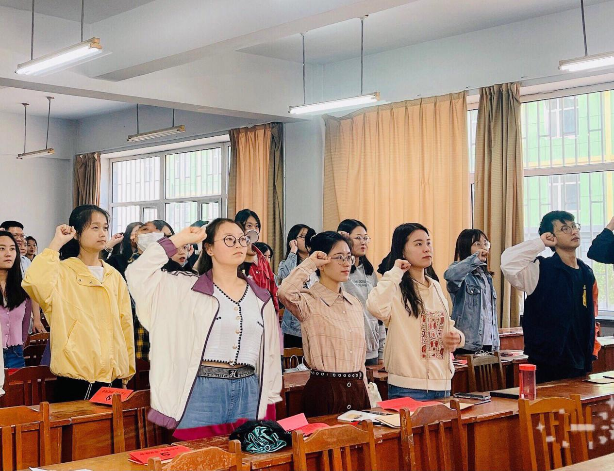 硕士学生第一党支部于2021年6月3日在南湖校区三教103室隆重举行庆祝政治生日暨重温入党誓词活动。