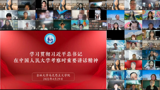 疫情隔离空间,却不隔离思想。本次学习习近平总书记考察中国人民大学重要讲话精神座谈会在云端线上完满落幕。相信通过本次座谈会,全体本科生能够牢记党的教诲,立志民族复兴,不负韶华,不负时代,不负人民,在青春的赛道上奋力奔跑。