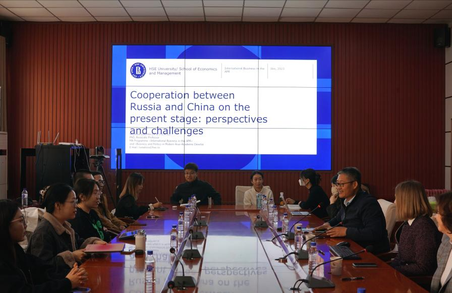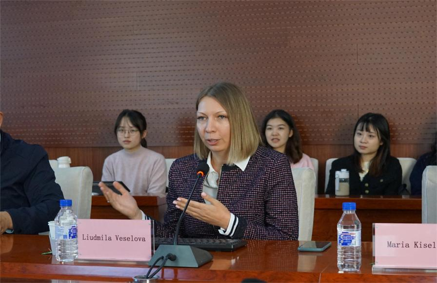 在交流互动环节,维塞洛娃教授围绕现场师生所提出的中俄关系问题进行了有益探讨,并对中俄关系的未来发展作出了积极展望。期间,俄罗斯国立高等经济大学国际处处长玛利亚·基谢廖娃(Maria Kiseleva)女士也介绍了俄罗斯留学及校际学术交流相关事宜,她热情欢迎成人抖音