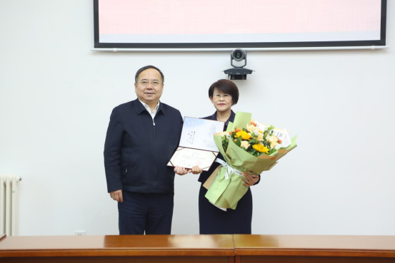 施展宣读了关于聘任李倩教授的决定,韩喜平为李倩教授颁发聘书并佩戴成人抖音