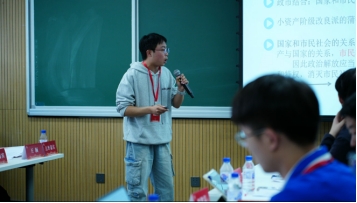 2022级本科生汪世烨主持。陈睿康、关云朔、朱泓而、林郑豪、班世钊五位同学分别以“论城市空间生产的阶级向度——基于《英国工人阶级状况》的文本考察”、“从‘批判本质’到‘三者一致’:唯物辩证法人学语境的三重批判——基于《〈黑格尔法哲学批判〉导言》与《哲学笔记》的文本探析”、“基于‘现实的个人’看《德意志意识形态》广义历史唯物主义的建构及其当代价值”、“《德意志意识形态》目的论问题的斯宾诺莎式解读——论马克思主义的反目的论维度”、“主体性的沦陷:他者剥削、物性颠倒和自我奴役——《资本论》视角下的资本主义统治结构探析”为题做了发言。