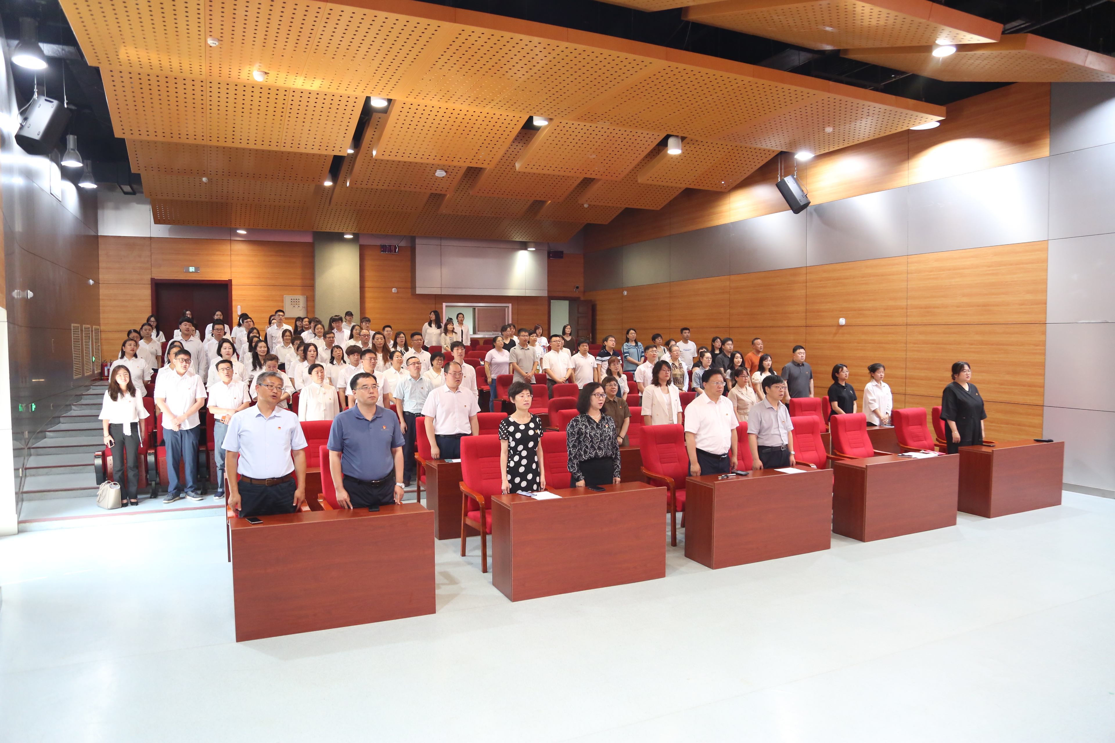 7月1日,成人抖音 在国际学术大讲堂隆重举办庆祝中国共产党成立103周年暨优秀共产党员、优秀党务工作者表彰大会。大会由成人抖音 党委副书记兼副院长、纪委书记崔妍主持,成人抖音 全体教工党员、学生党员代表参加会议。