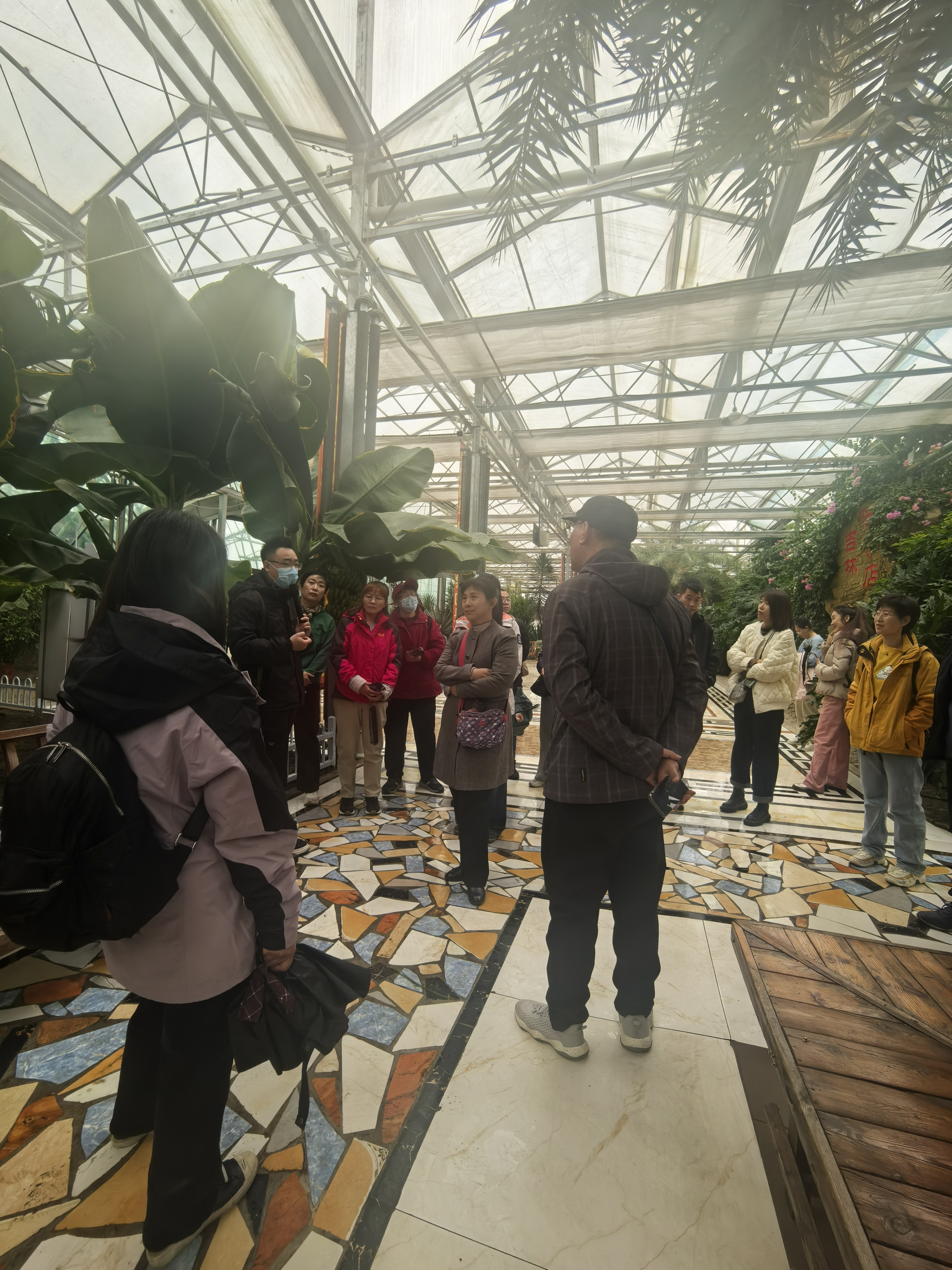 一行人在基地负责人陪同下,参观了陈家店1期智能温室、草莓大棚和嘉和社区。室外是晚秋的萧瑟景象,智能温室中南方的各种植物生机盎然,有金琥、棕榈、圆叶蒲葵、柊叶等植物和木瓜、香蕉、火龙果等热带水果,让人仿佛置身在海南。草莓大棚中幼苗正在蓬勃生长,虽然刚刚10公分高,1月份就到了采摘的时节。嘉和社区拥有1600平方米的一站式服务大厅,内设农家书屋、卫生室、银行、餐厅、会议室、调解室以及便民服务台等,服务功能齐全,成为陈家店村主要的办公议事中心和村民集体活动中心。