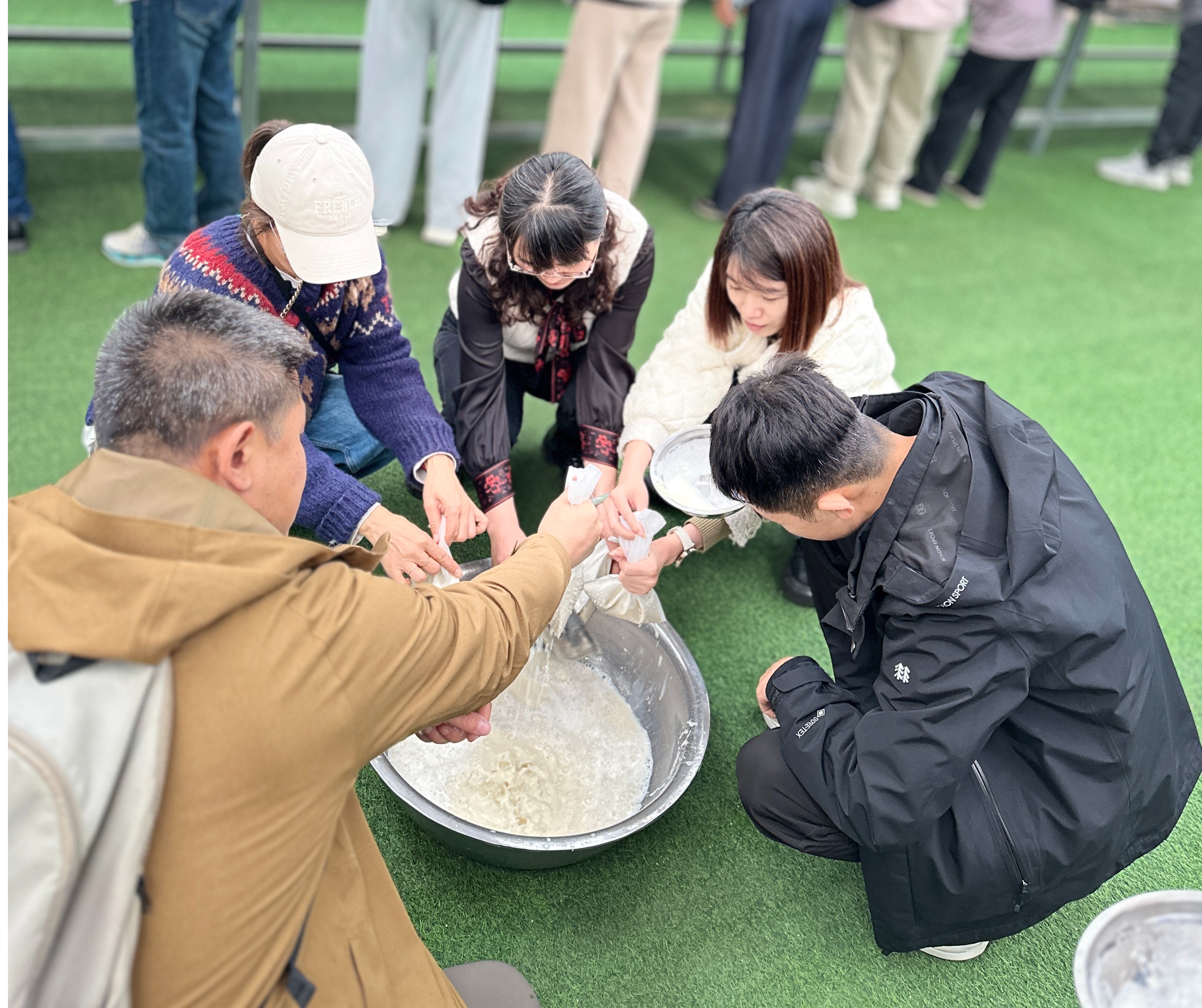 巾帼的贡献。在完成“妇女小家”一家一品项目调研后,所有人参加了古法豆浆的制作和团队拓展活动,释放压力、放松了心情,增进教职工之间的感情。