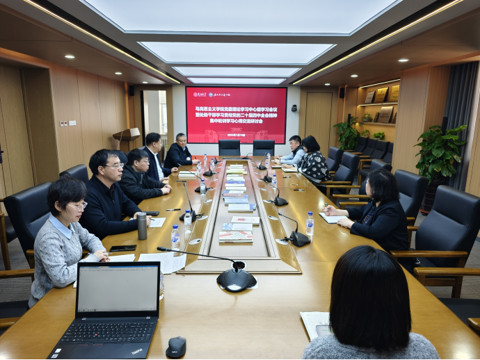 在吕振羽楼320会议室召开党委理论学习中心组学习会议,交流处级干部学习贯彻党的二十届四中全会精神集中轮训学习心得。会议由成人抖音