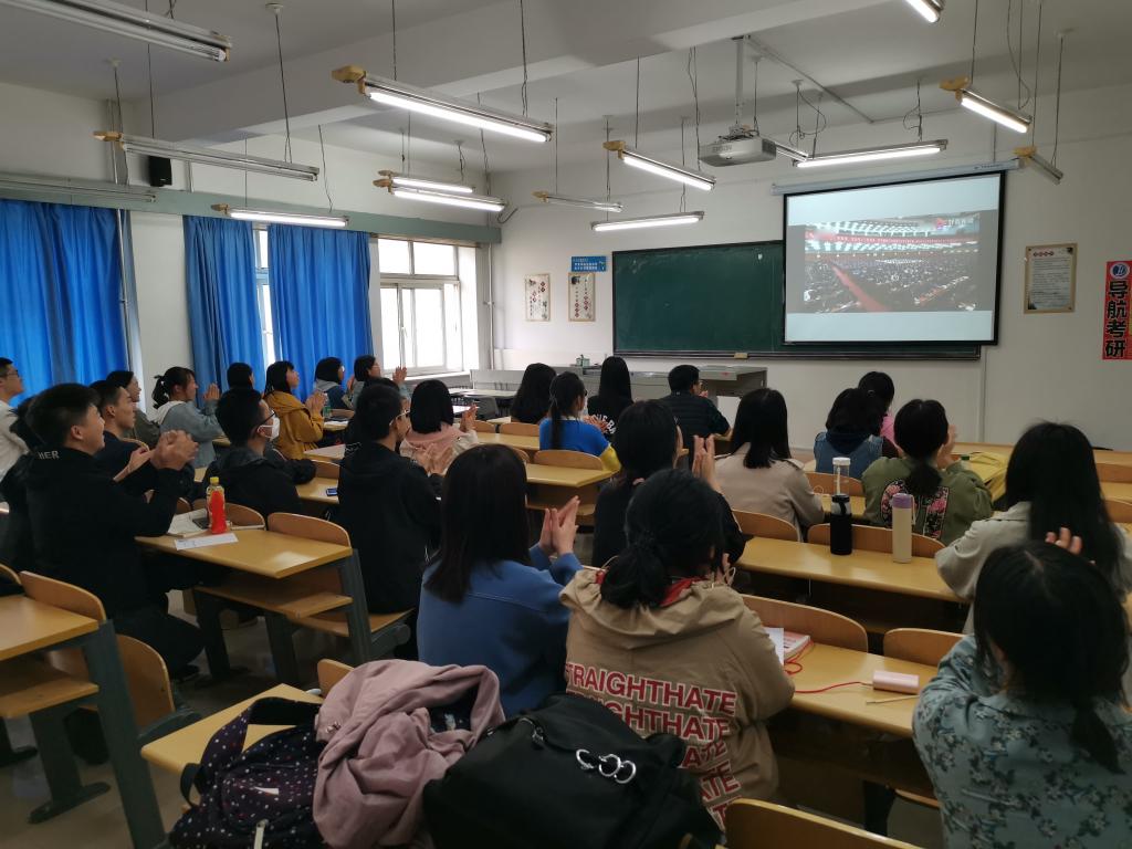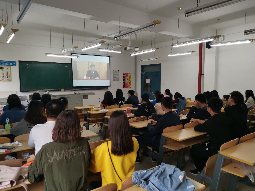 组织全体本科生共同观看了习近平总书记在纪念五四运动100周年大会上讲话的直播,认真学习了总书记的讲话精神。