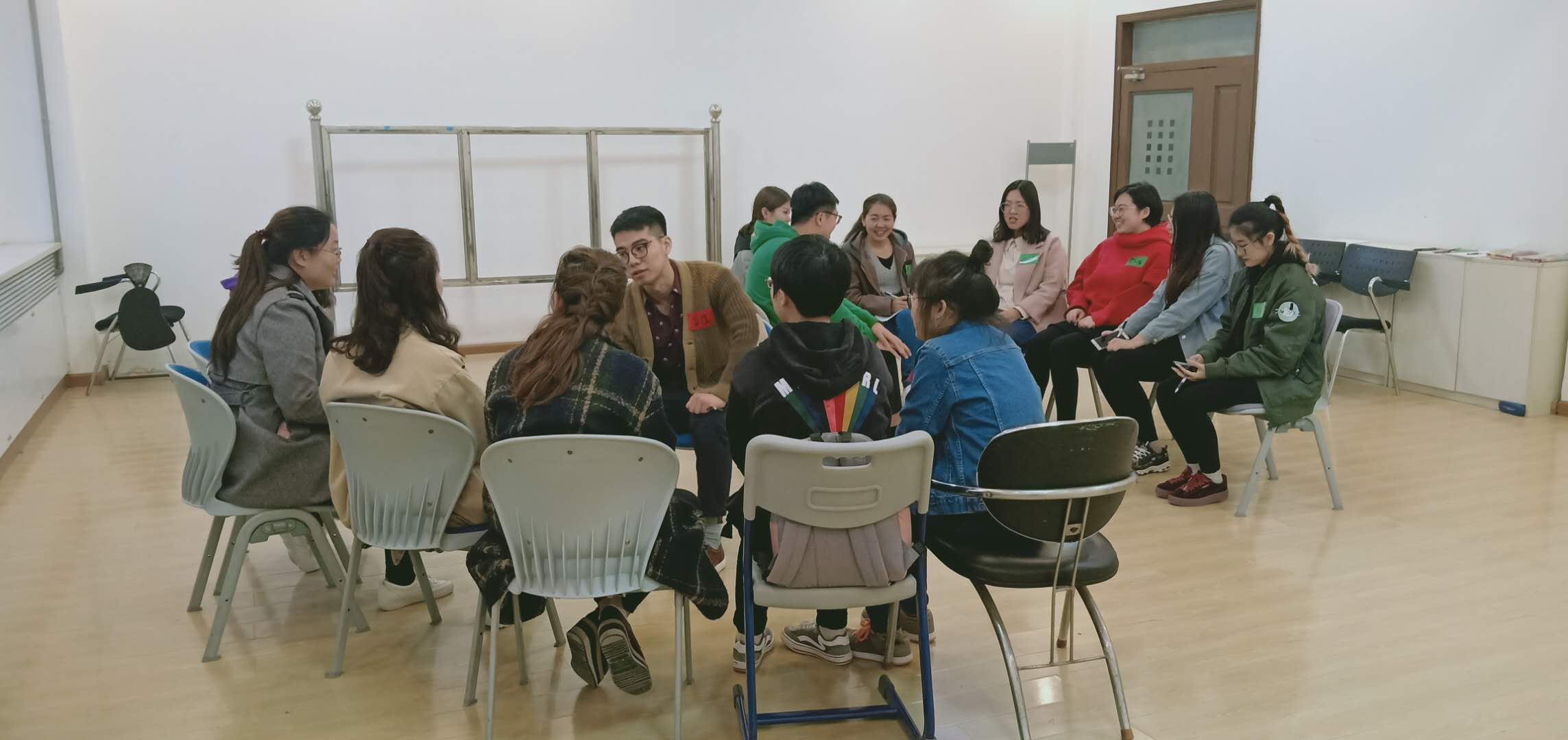 2018级研究生于2019年4月25在经信A101团体活动室开展了以“心灵沟通”为主题的班会活动,学生朋辈心理辅导员朱帅担任主持人。