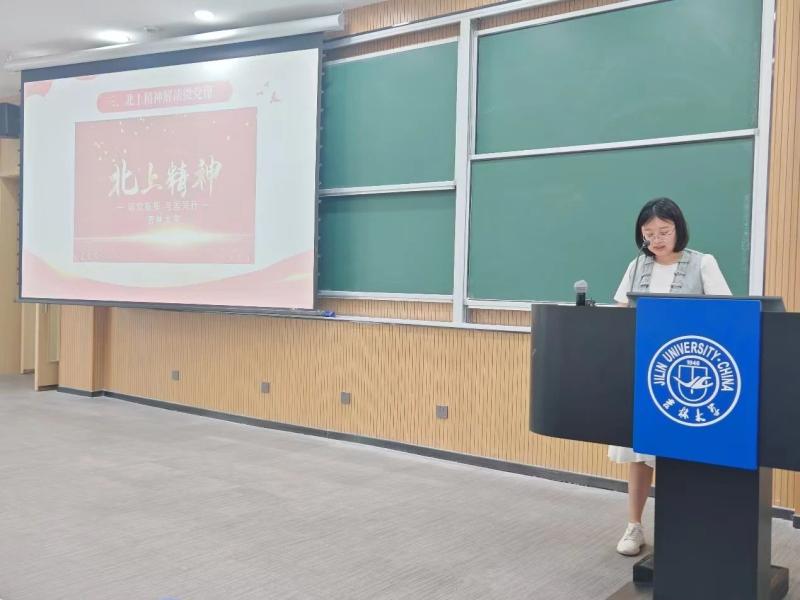 万佳悦老师从三个方面出发,深入浅出地讲解了黄大年精神的起源、内涵以及激励作用。万老师指出,同学们要认真学习黄大年老师努力将爱国之情、强国之志、报国之行相统一的精神品格,学习黄大年老师科技报国、无怨无悔的爱国情怀,同学们认真聆听,并深有感触。随后,万老师带领同学们观看北上精神解读微党课。北上精神是成人抖音
