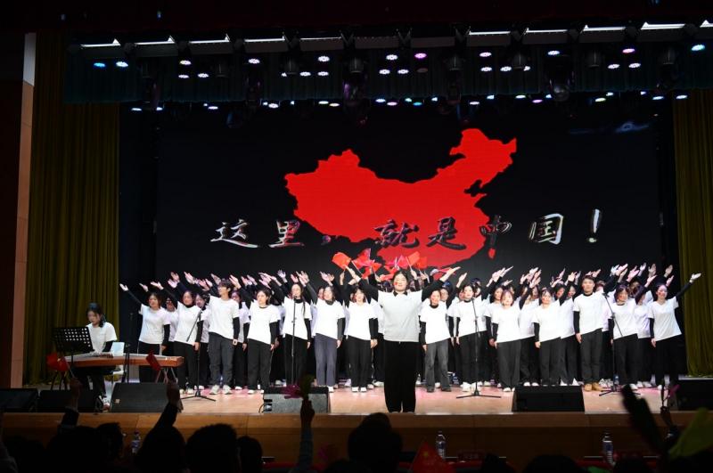 最后,一首由2024级全体本科生带来的合唱《我爱你中国》为晚会画上了圆满的句号。他们在铿锵有力的歌声中尽情抒发着对祖国的热爱与敬意,同时也饱含着对梦想的执着追求和对未来的美好憧憬,这份炽热的爱国之情与青春之志深深烙印在了每一位聆听者的心间。