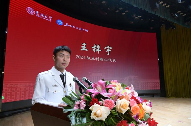 随后,2024级本科生新生代表王梓宇和2024级博士研究生新生代表郑家璇分别进行发言。王梓宇同学表示,三年军旅生涯使他深刻领悟到马克思主义理论是塑造理想信念,铸就时代新人的关键力量。他坚信,随着长期深入的学习,成人抖音