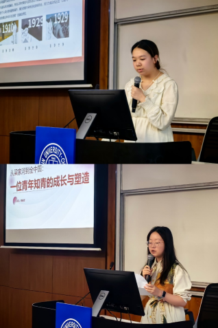 张荟同学分享了作品《青衿问道书卷里,赤帜扬帆田野间》的创作历程。她现场播放了视频的精华片段,并按照时间线,讲述了选题立意、文稿打磨到实地拍摄的全过程。指导教师陈方南教授在点评中,特别赞赏了该组同学在构思立意上的巧思和文案撰写上的用心——文本解读精准,实践呈现生动,体现了知行合一的追求。