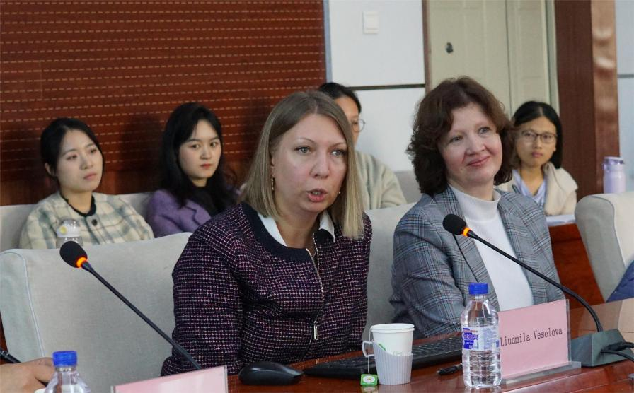 在交流互动环节,维塞洛娃教授围绕现场师生所提出的中俄关系问题进行了有益探讨,并对中俄关系的未来发展作出了积极展望。期间,俄罗斯国立高等经济大学国际处处长玛利亚·基谢廖娃(Maria Kiseleva)女士也介绍了俄罗斯留学及校际学术交流相关事宜,她热情欢迎成人抖音