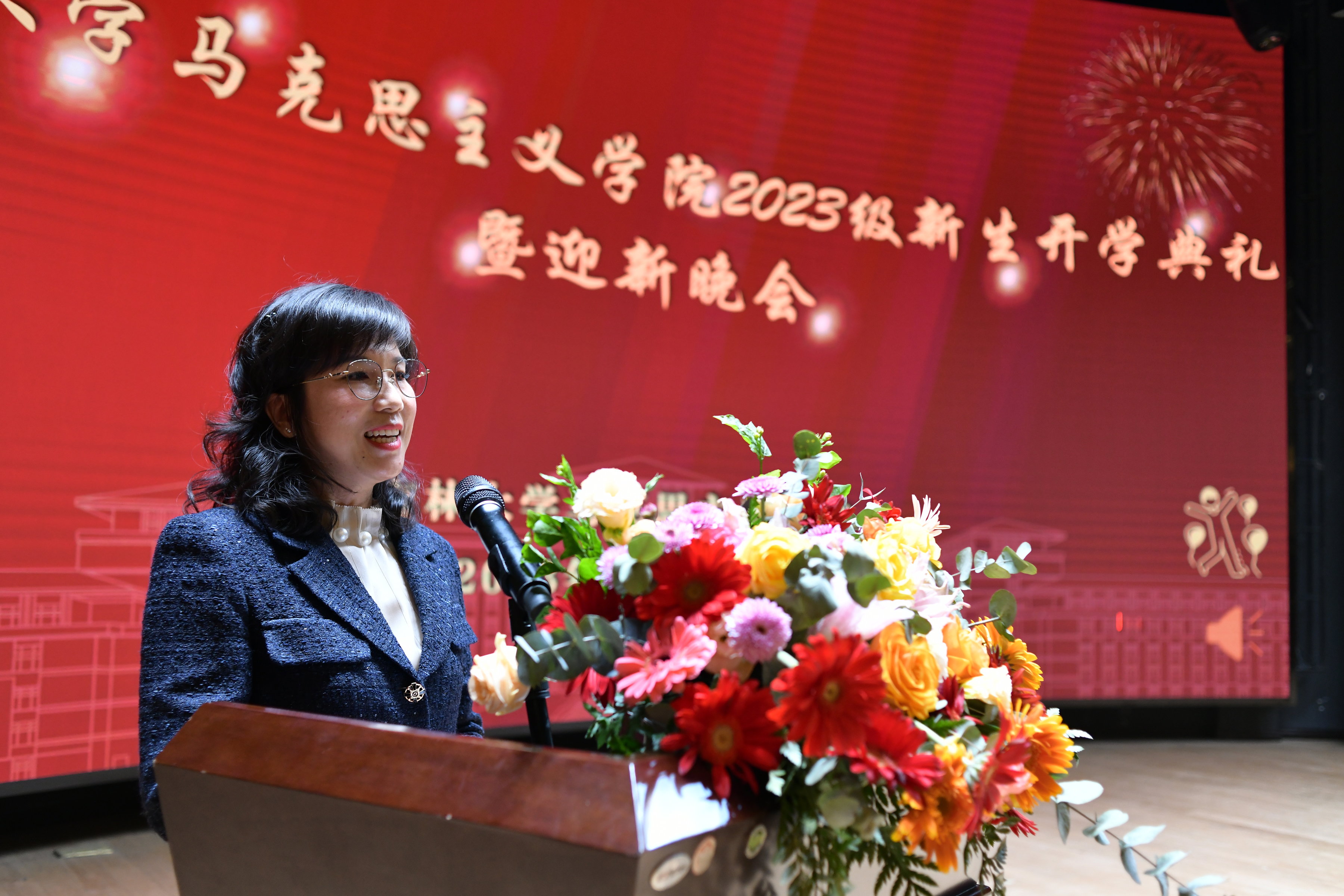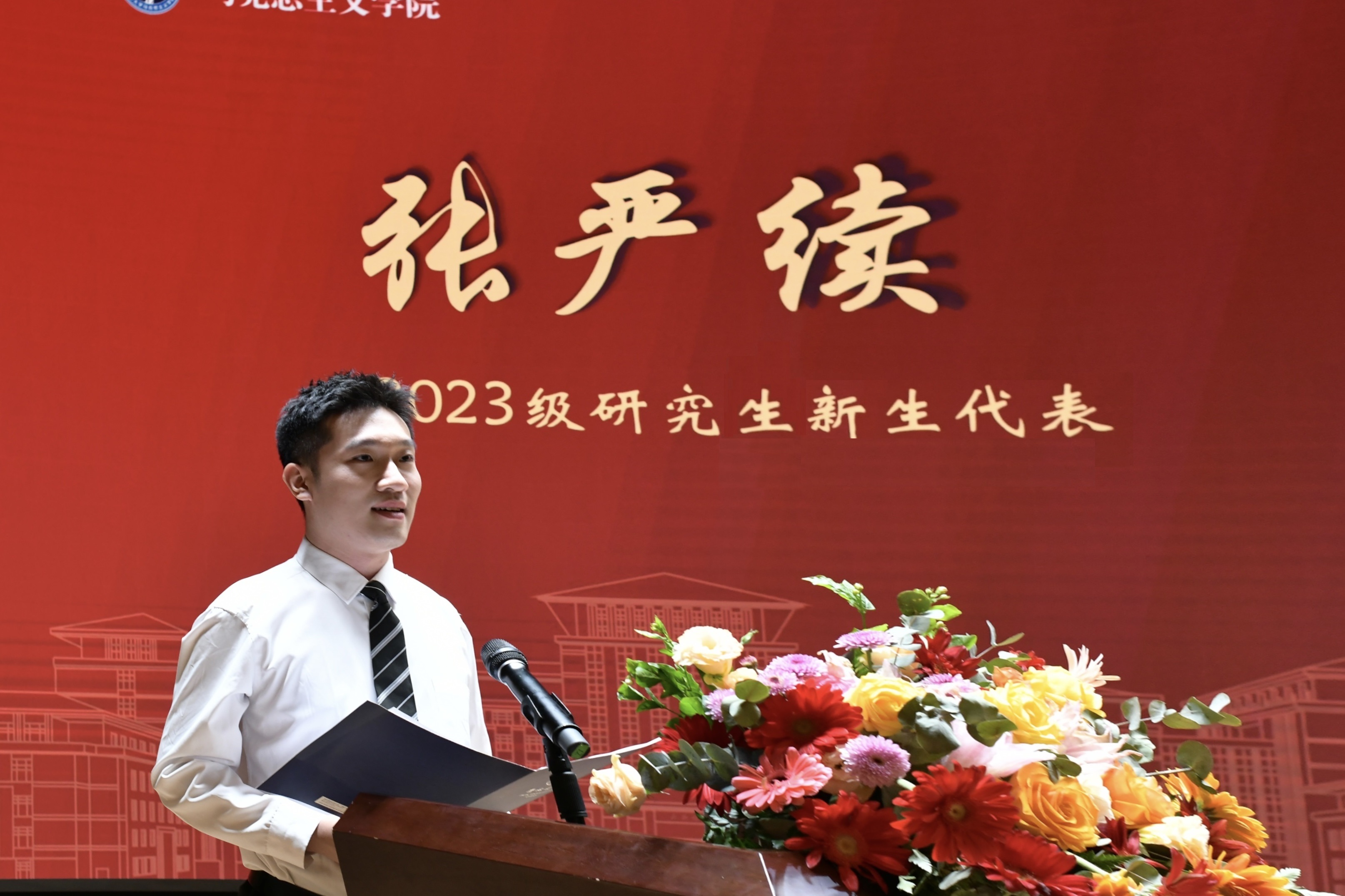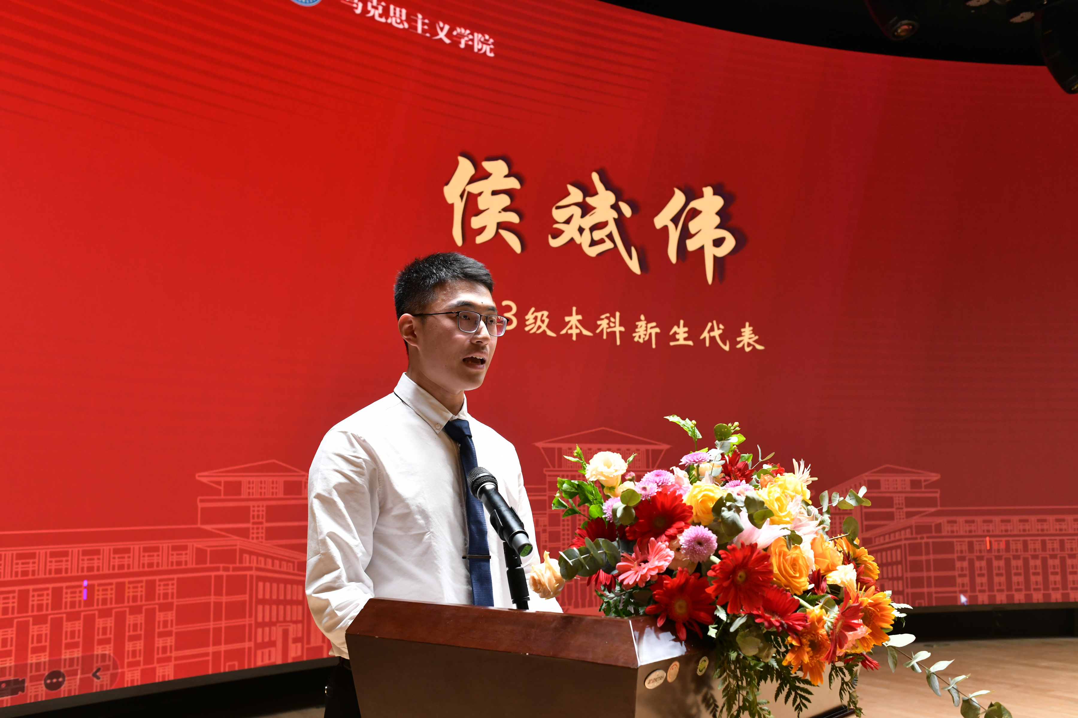 2023级本科生新生代表侯斌伟、研究生新生代表张严续分别进行发言。侯斌伟同学谈到,通过阅读马恩著作,他深切感受到马克思伟大的价值观、择业观、友谊观、爱情观对于我们解答人生困惑、作出正确人生抉择具有的指导意义,相信通过日后的学习,成人抖音